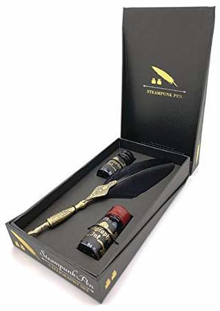 STEAMPUNK CALLIGRAPHIC PEN SET - includes calligraphy pen & two bottles of ink