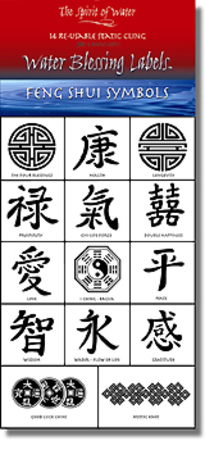 WATER BLESSING LABELS -- FENG SHUI COLLECTION - 14 re-usable, static-cling labels, and 14 complimentary inspirational ble